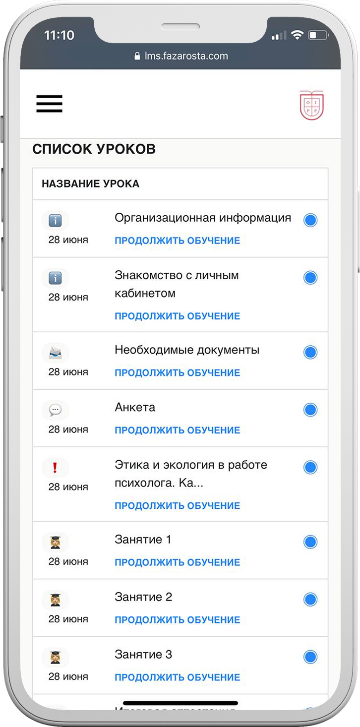 Доступ к записям. Все учебные материалы сохраняются в личном кабинете после окончания обучения.