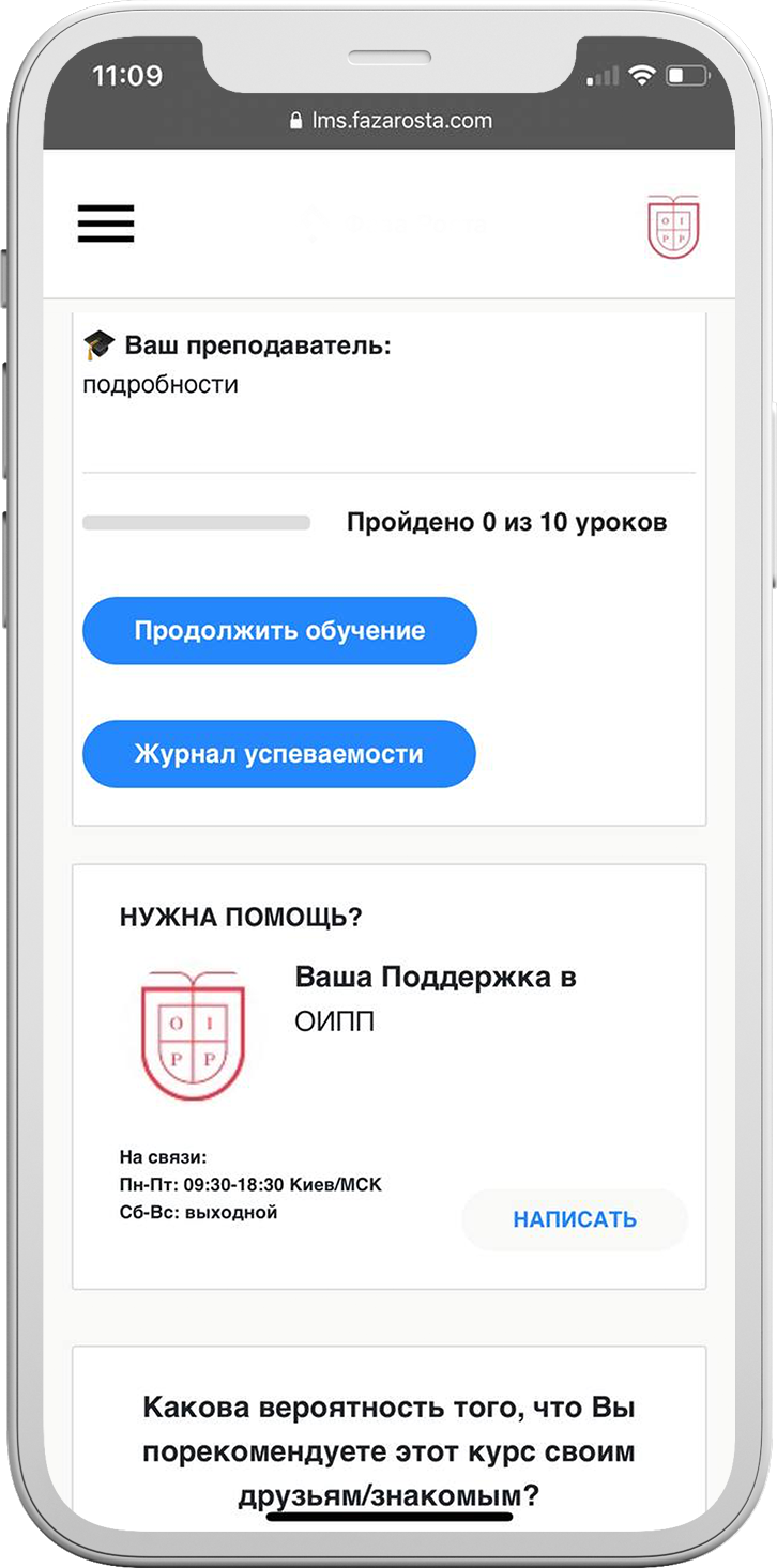 Удобное расписание. Обучение проходит в будние дни, по вечерам в личном онлайн-кабинете.